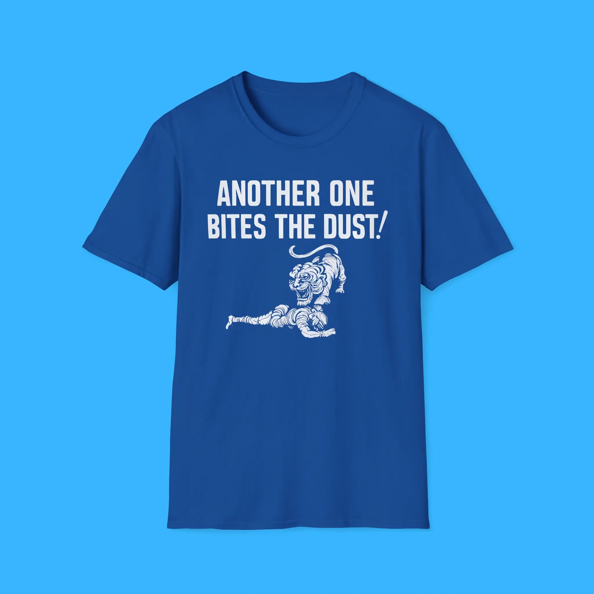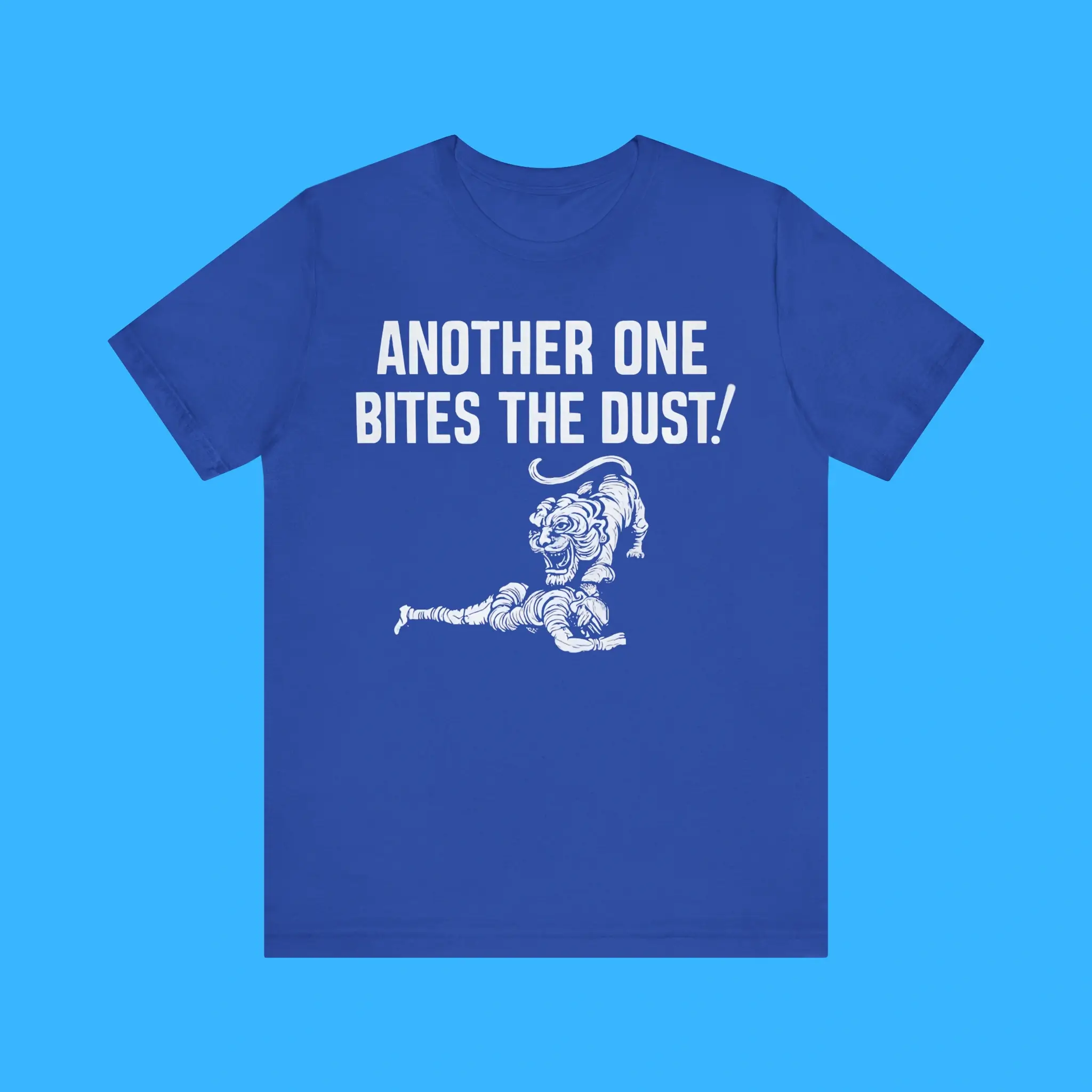 The Another One Bites The Dust Detroit Lions Shirt is built for comfort, style, and lasting quality. The print stays sharp after many washes. The fabric keeps its shape and color. Wear it at home, at a concert, or in the stadium. It’s a fun way to show your Detroit spirit and your love for rock history.