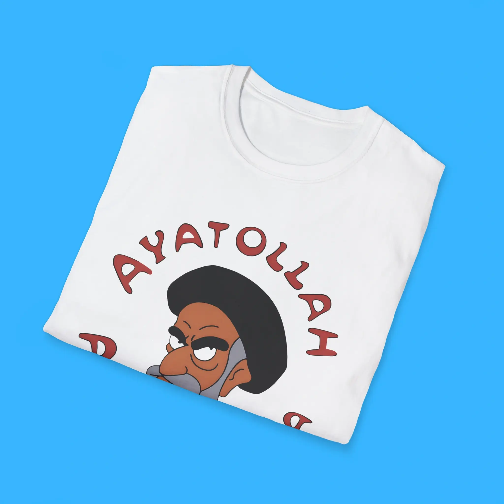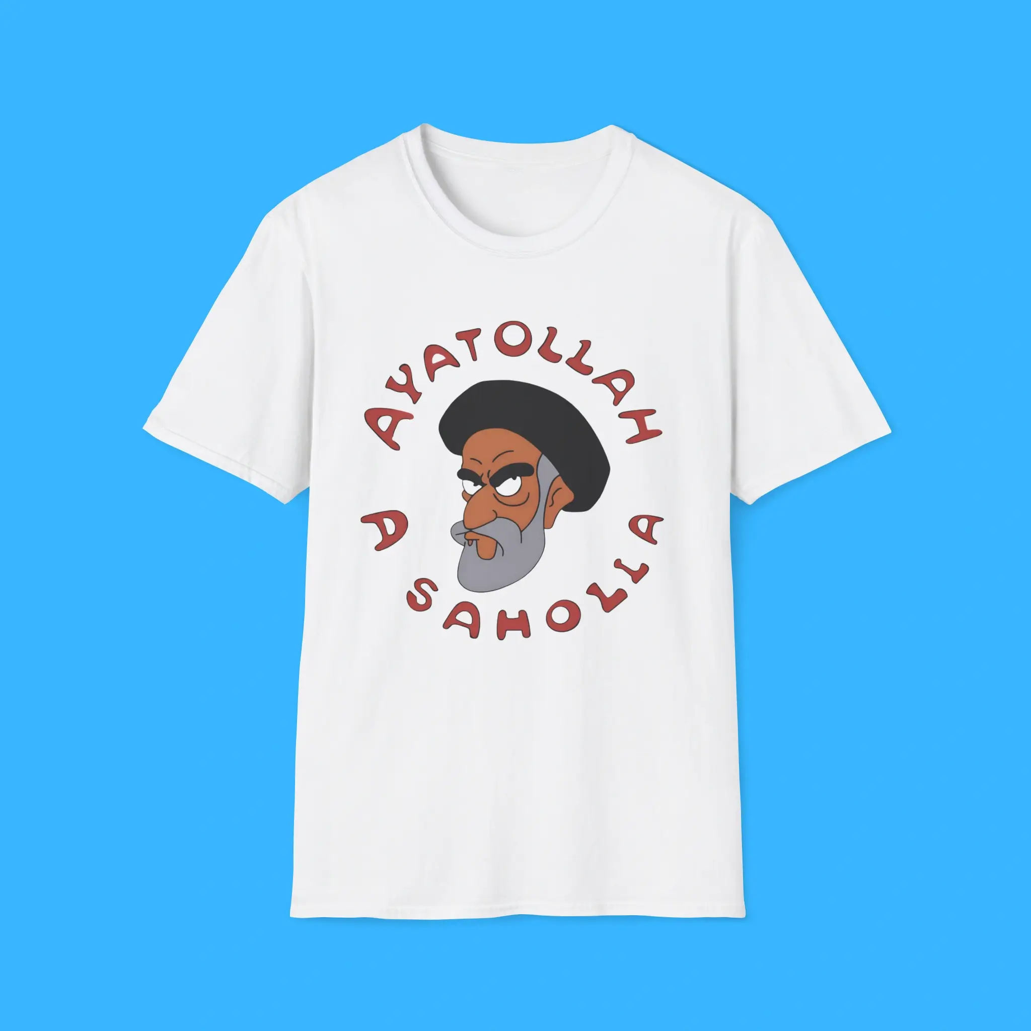 Whether you are a collector of funny graphic tees, a fan of Simpsons T-shirts, or someone who enjoys political parody shirts, this Ayatollah Assahola Tee is a must-have. It combines comfort, style, and humor into a single piece. Because the design is bold and unique, it guarantees attention wherever you go.