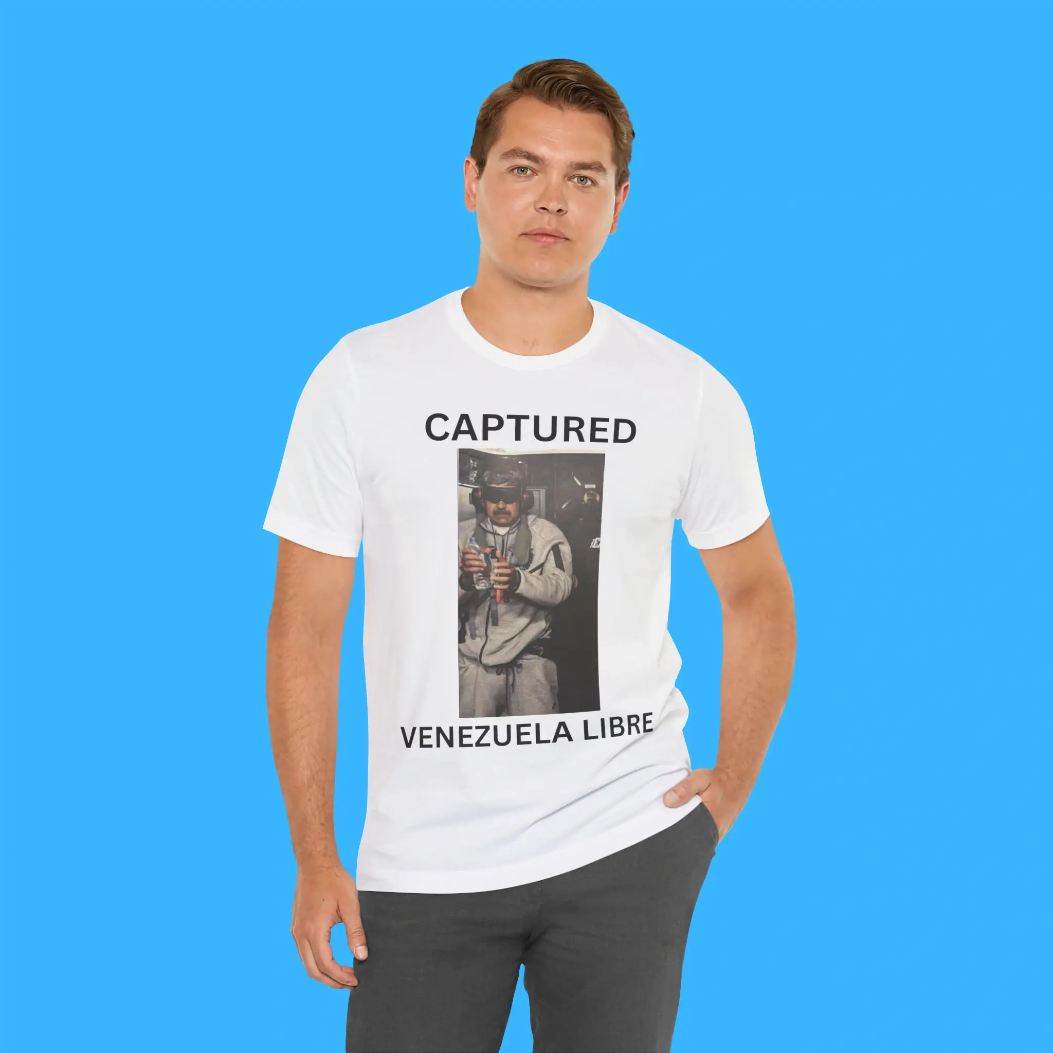 Show your support for Venezuela with the Captured Venezuela Libre Shirt. This bold tee represents liberty, democracy, and human rights. Featuring the impactful phrase “Captured Venezuela Libre” and a nod to Nicolás Maduro Venezuela Libre, it makes a strong statement while keeping you stylish.