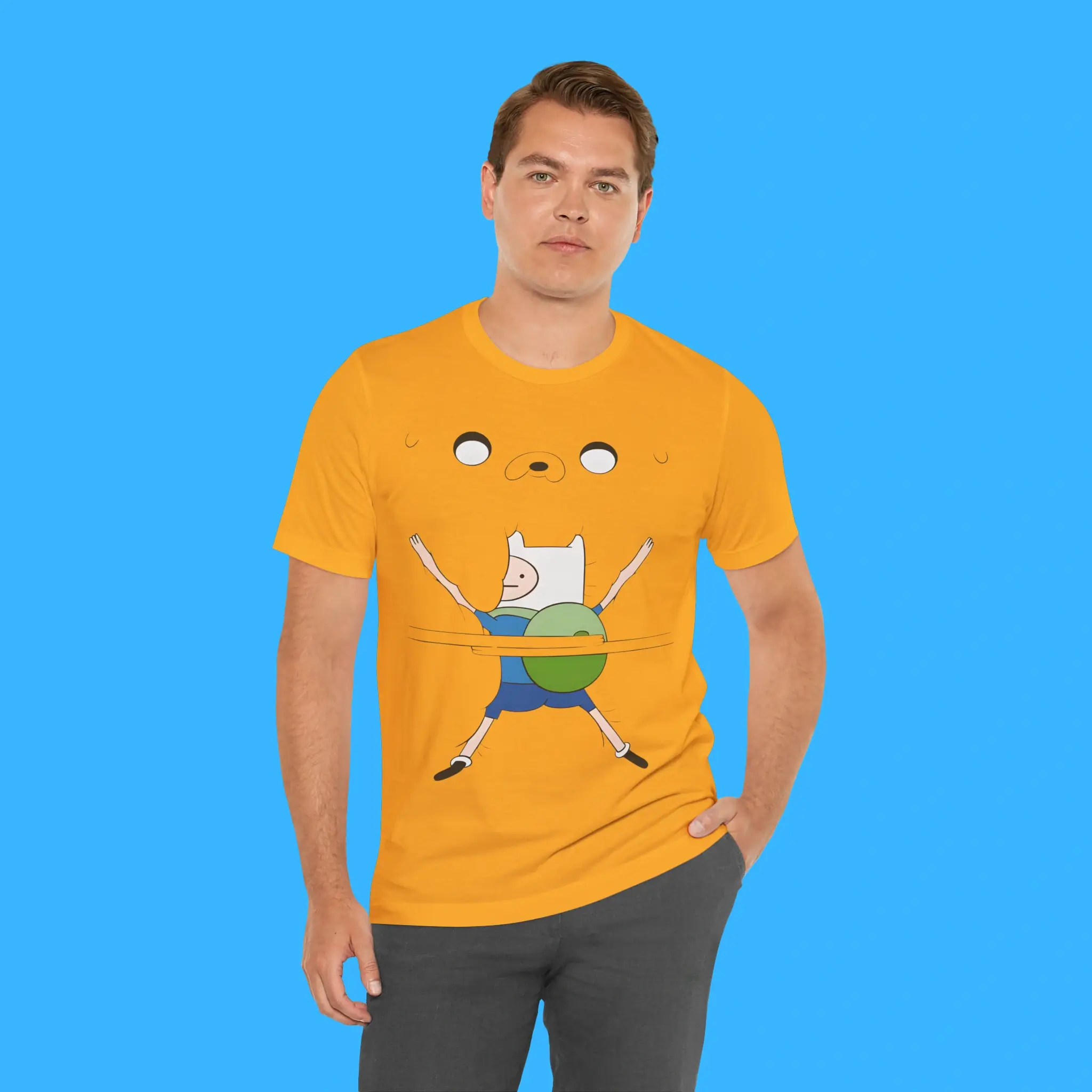 This isn’t your average cartoon clothing. This shirt acts as a real conversation starter. It features a stylized graphic of Finn the Human in a playful, ironic embrace. This design leans into the “weirdcore” aesthetic popular on TikTok and Reddit. Whether you call it the Finn Hugging Boobs Shirt or an Adventure Time parody tee, you will turn heads. Wear it to conventions, parties, or casual hangouts to show off your humor.