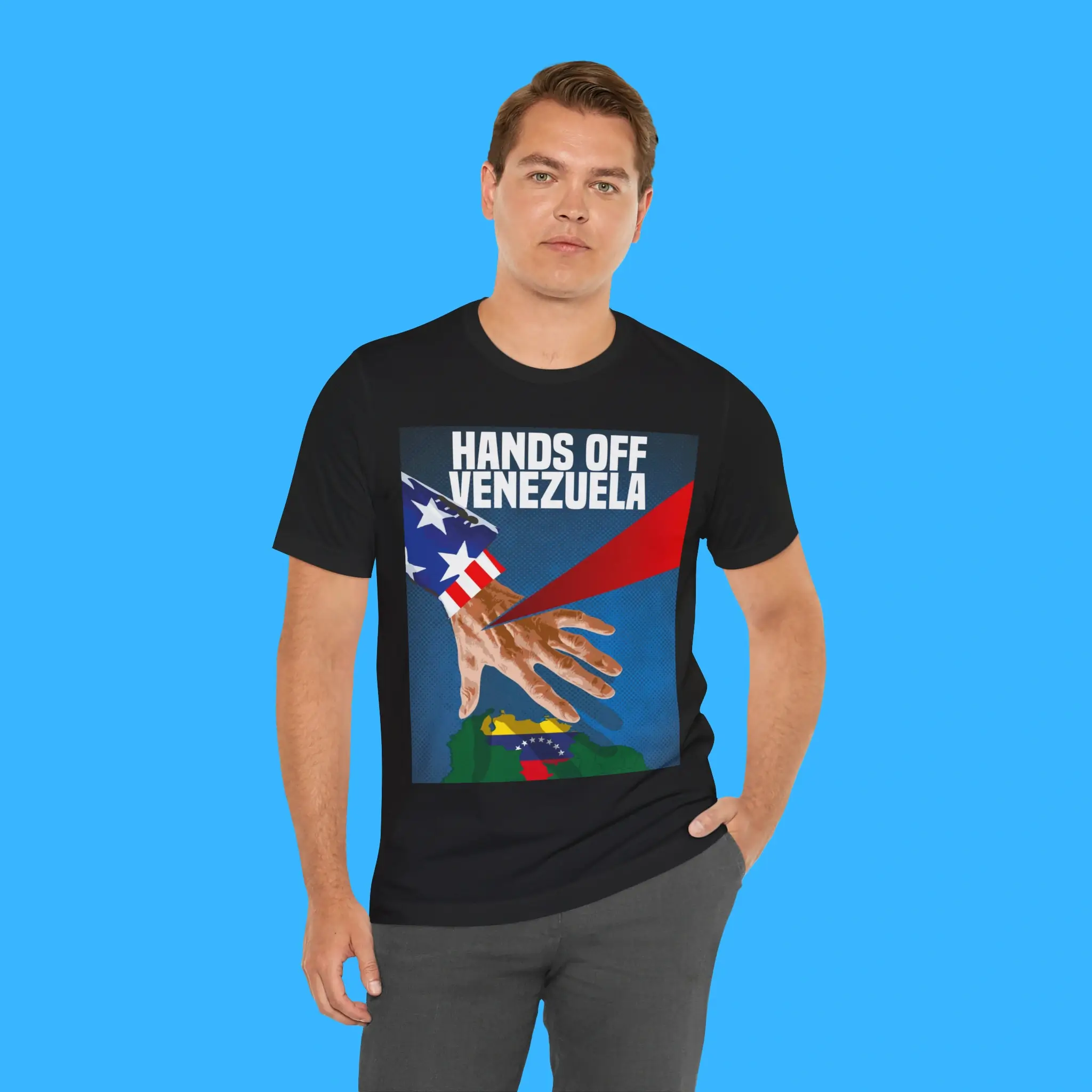 Crafted from premium-quality cotton or cotton-blend fabric, the Hands Off Venezuela protest shirt offers all-day comfort, breathability, and durability. The high-quality print is designed to last through repeated washes without fading or cracking. Available in multiple sizes and colors, this political statement tee fits all body types and styles.