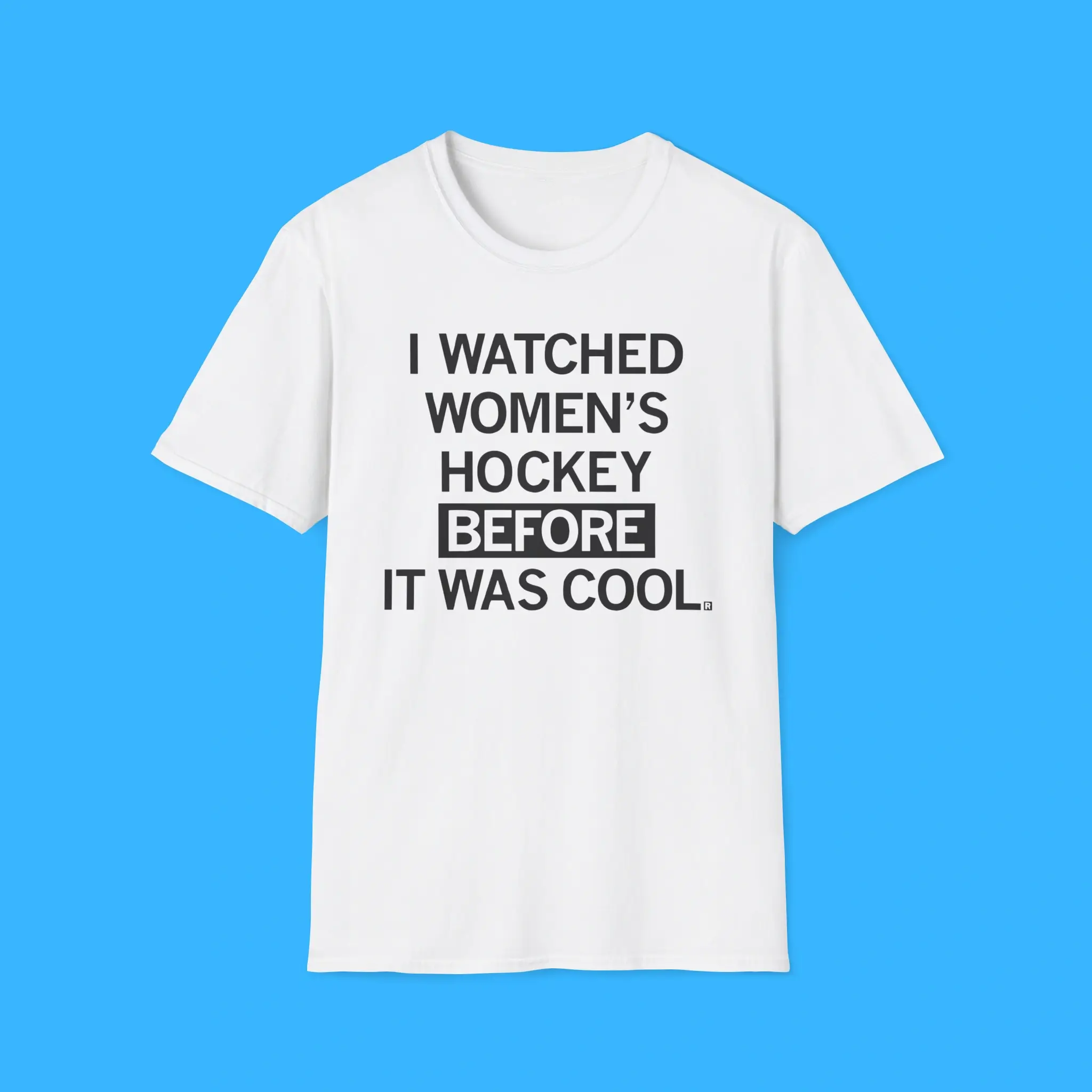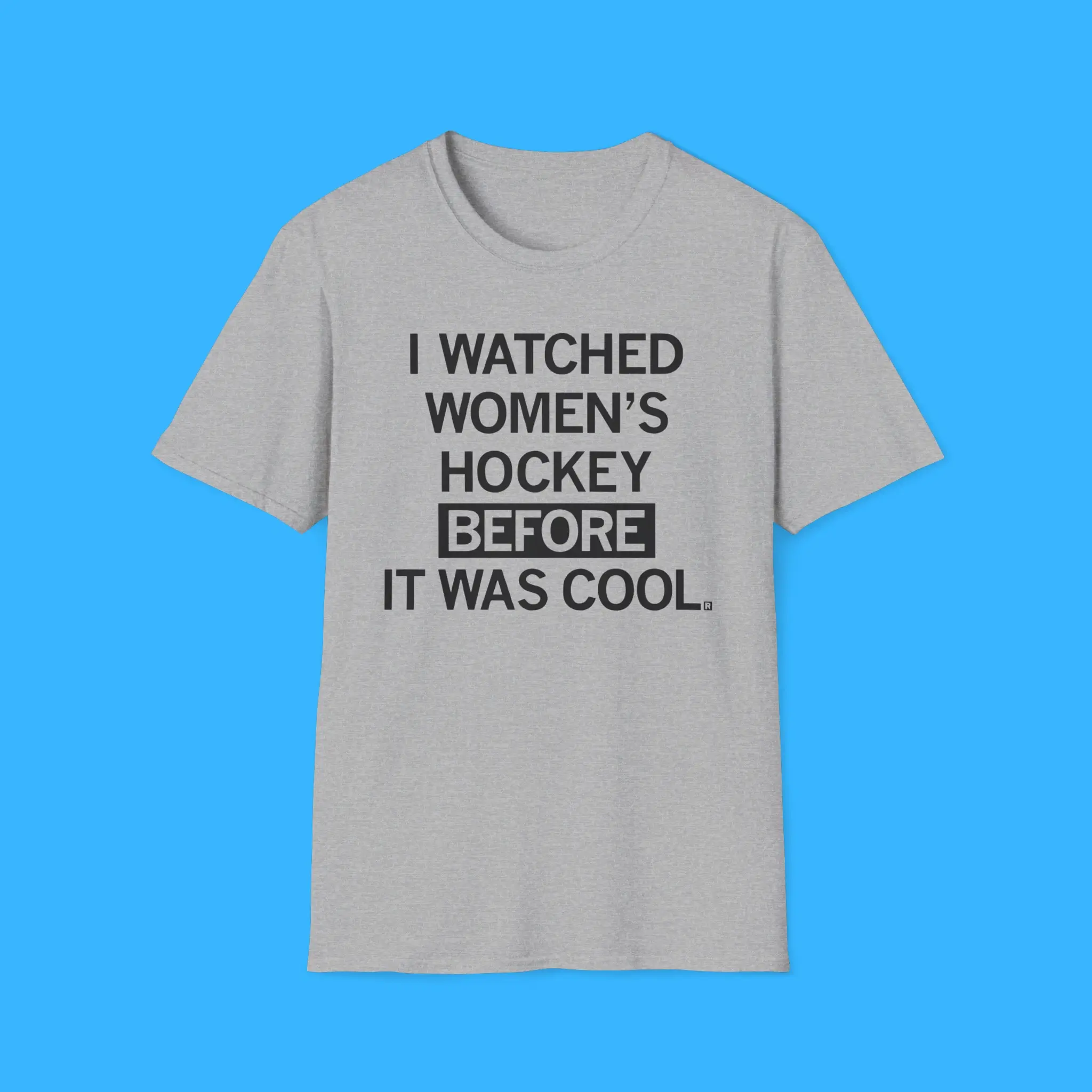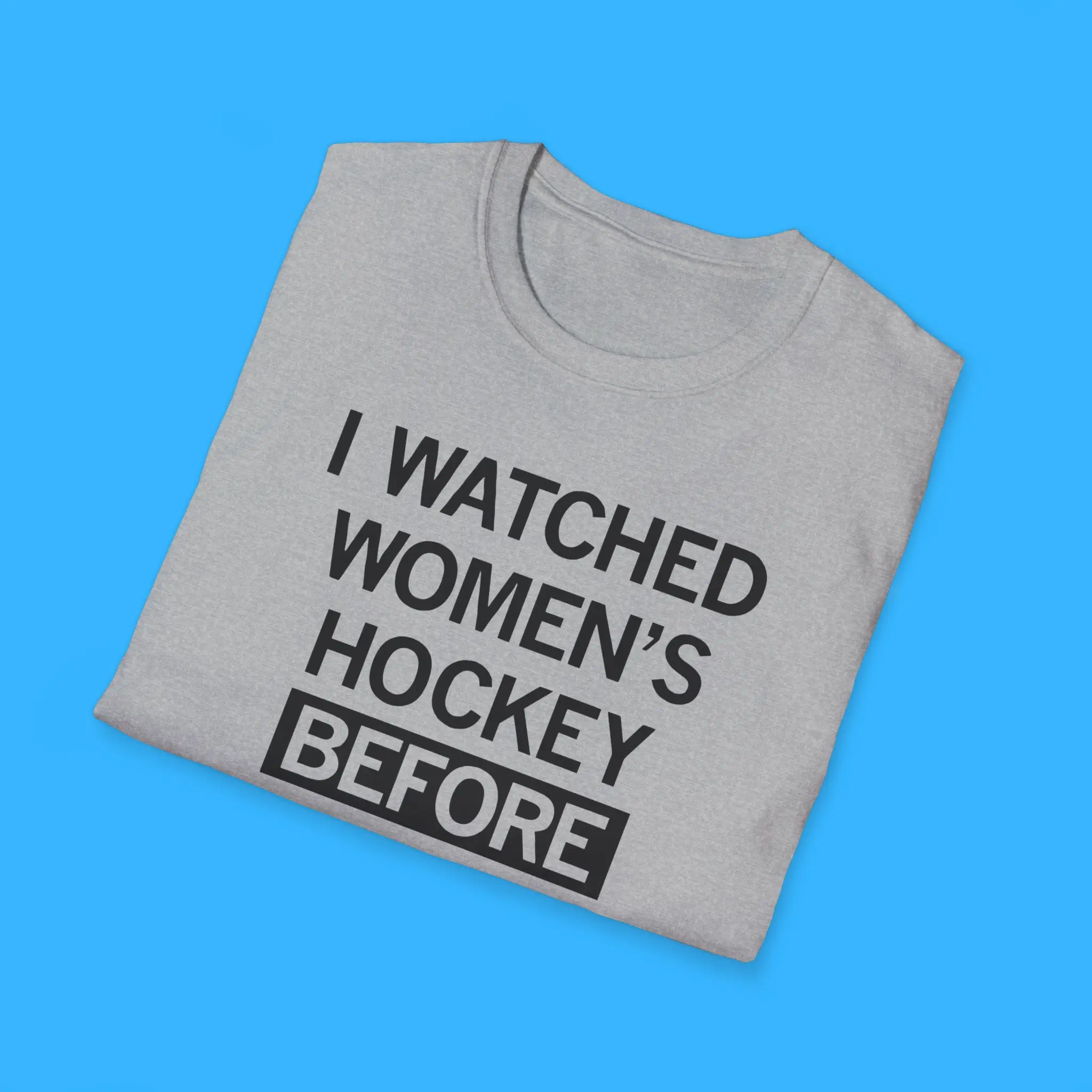 Its bold statement, “I Watched Women’s Hockey Before It Was Cool”, makes it clear that you are a true fan. This design appeals to anyone who loves women’s sports apparel, hockey fan shirts, and ice hockey merchandise. It’s a great addition to your wardrobe and a conversation starter at games or hockey events.