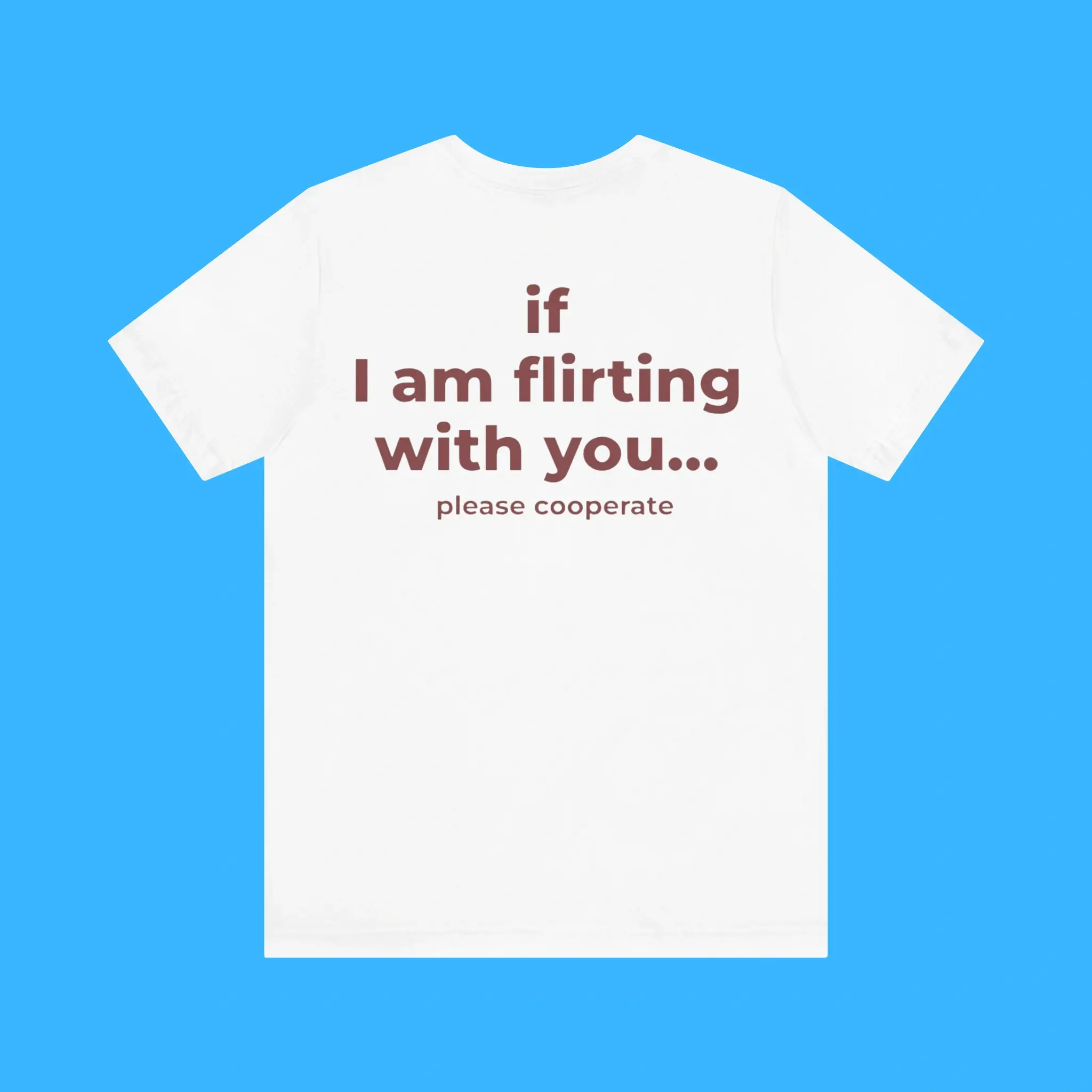 Looking for a funny flirting shirt that instantly grabs attention and sparks laughs? The If I Am Flirting With You Please Cooperate Shirt is the perfect choice for anyone who loves humor, confidence, and playful sarcasm. Designed with bold letter printing, this funny text t-shirt delivers a clear message while keeping your outfit trendy and eye-catching.