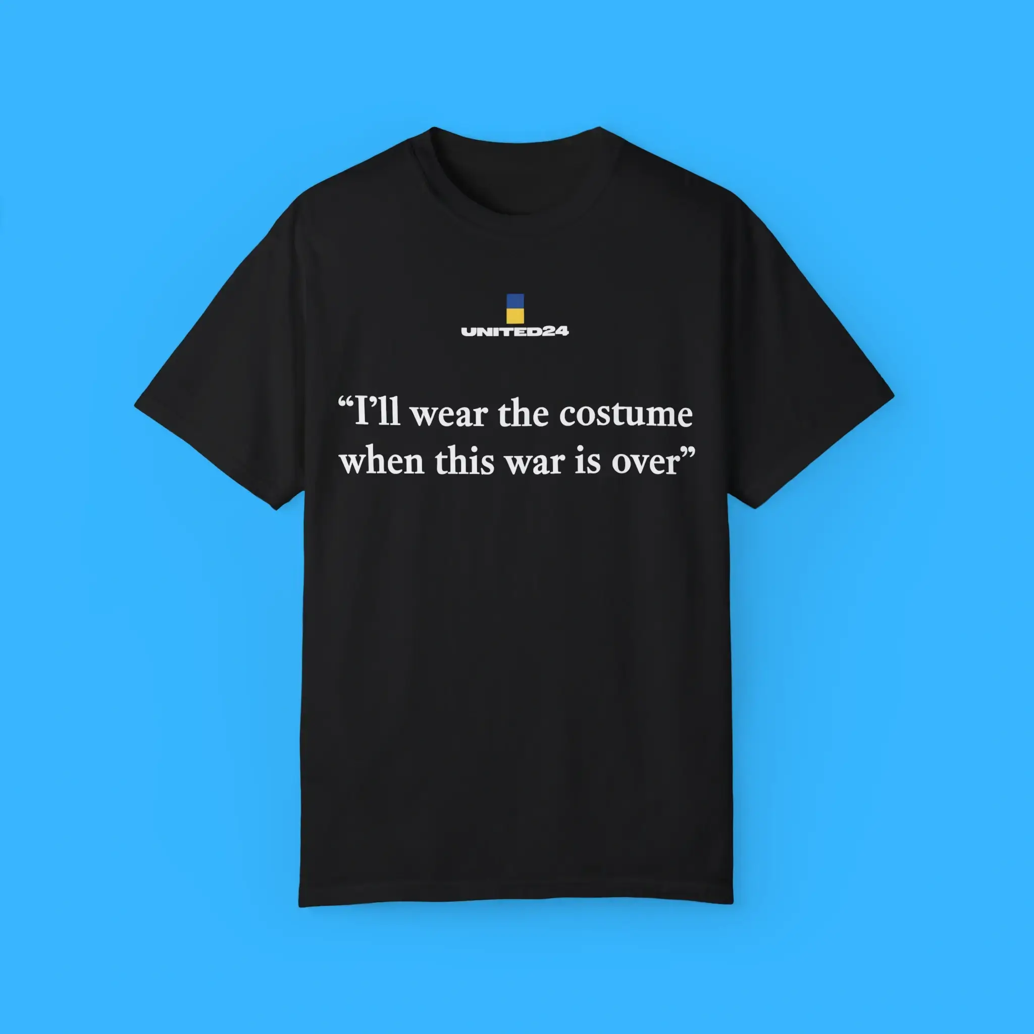 Don’t miss out on the chance to show your support for Ukraine. Order your United24 Ukraine I’ll Wear The Costume When The War Is Over Tee today and join the movement for peace and unity. Show the world that you stand with Ukraine in its time of need!