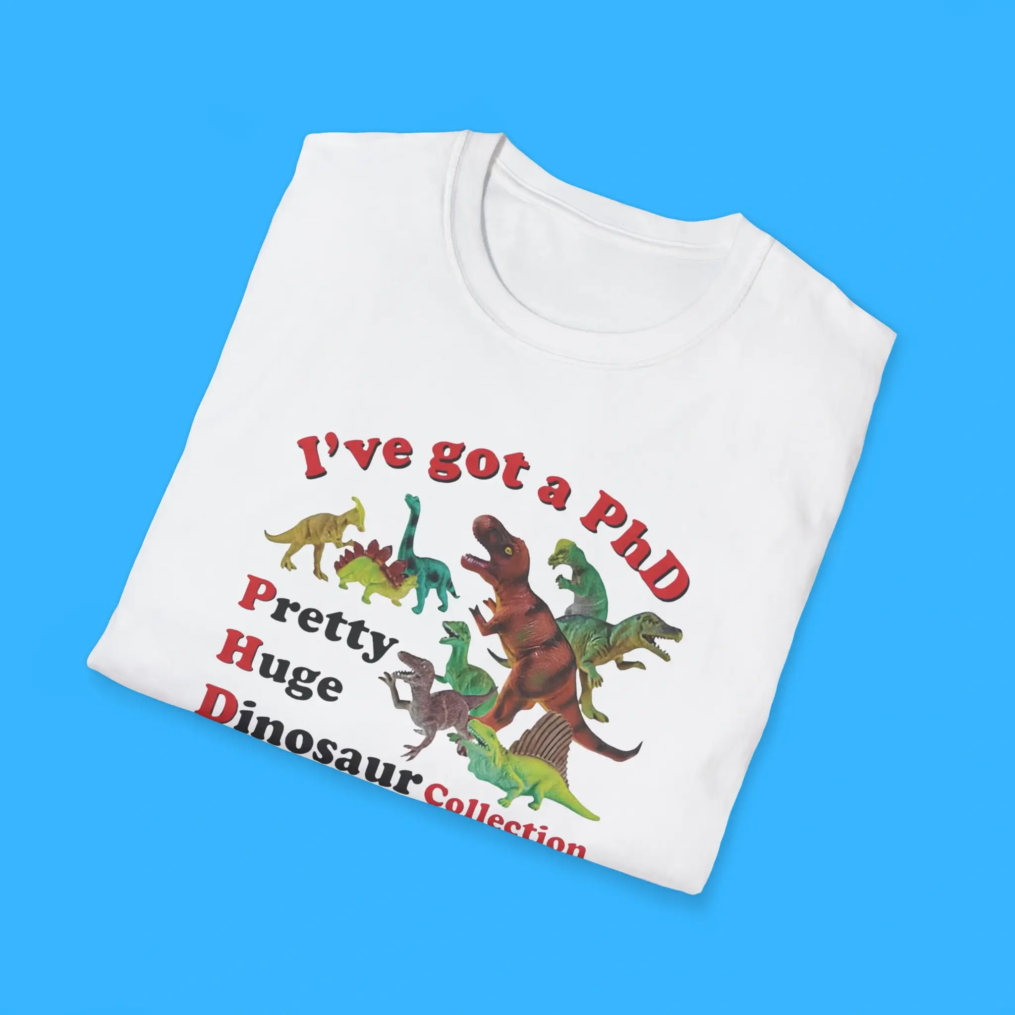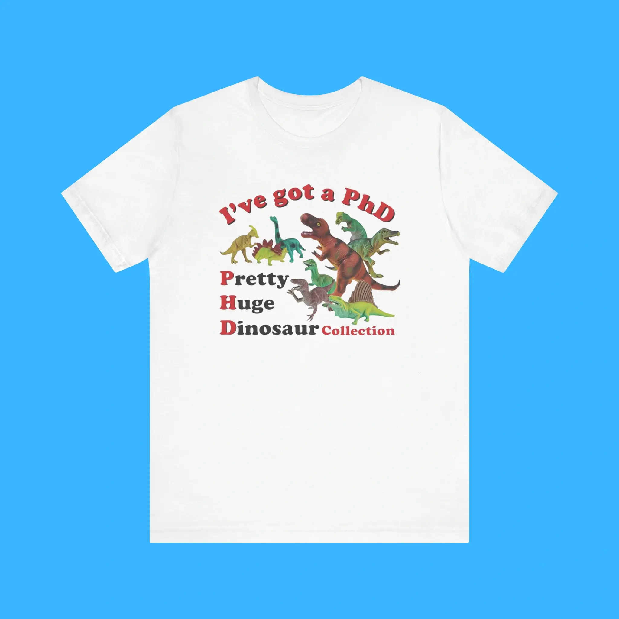 Order your I’ve Got a PhD dinosaur tee today and show off your Pretty Huge Dinosaur Collection in style!