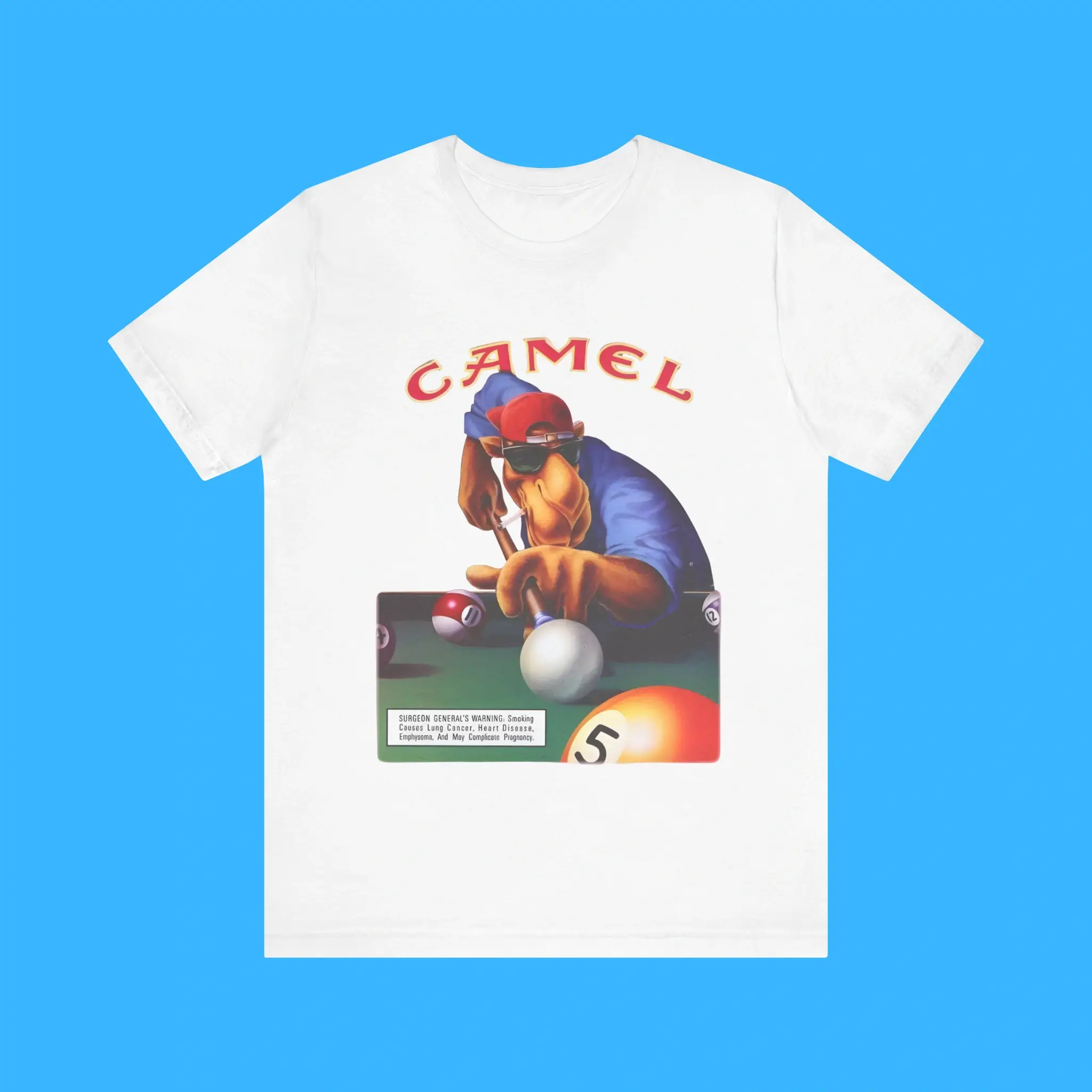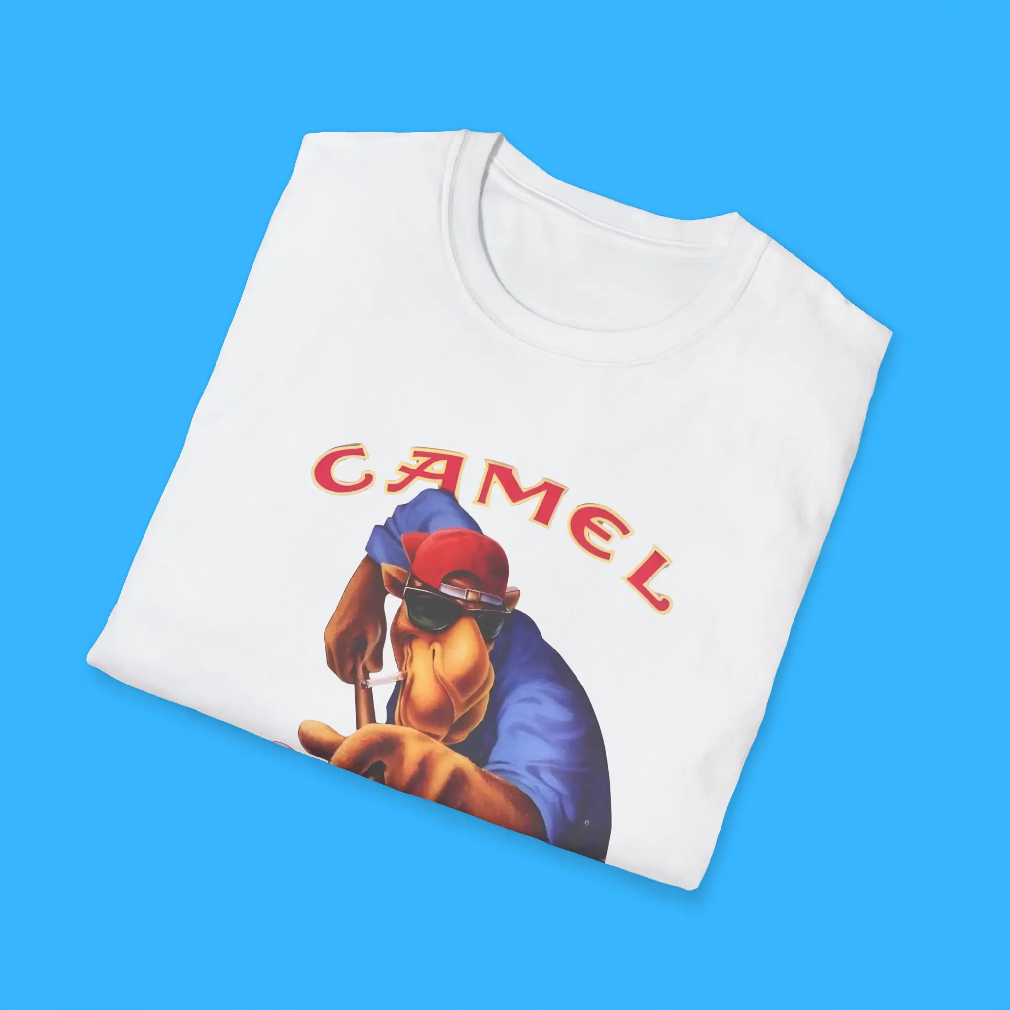 Crafted from high-quality cotton or a cotton-blend fabric, this retro Camel cigarettes tee offers softness and durability. At the same time, the breathable material ensures everyday comfort. The unisex fit makes it suitable for people of all genders who appreciate 80s graphic tees and classic logo apparel.