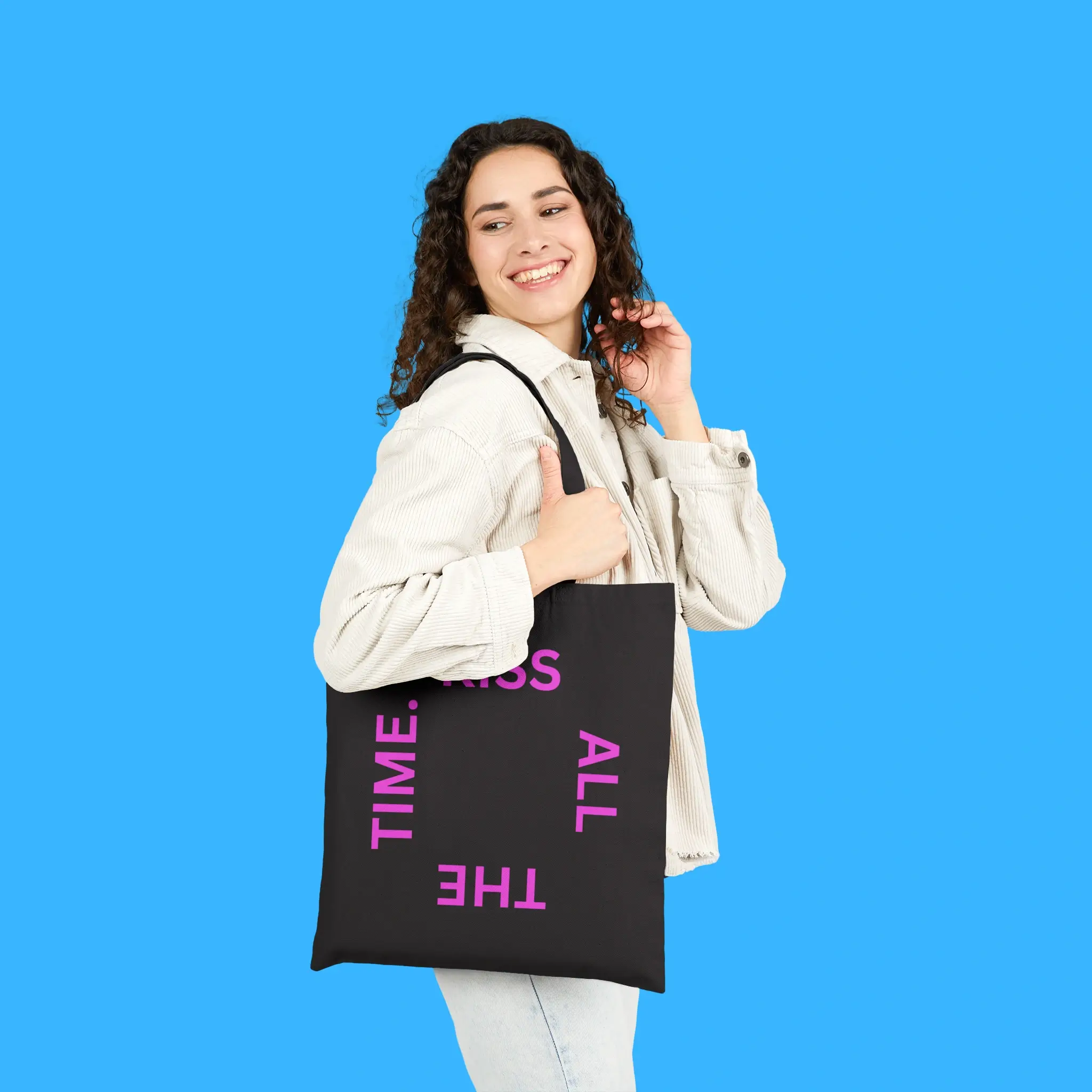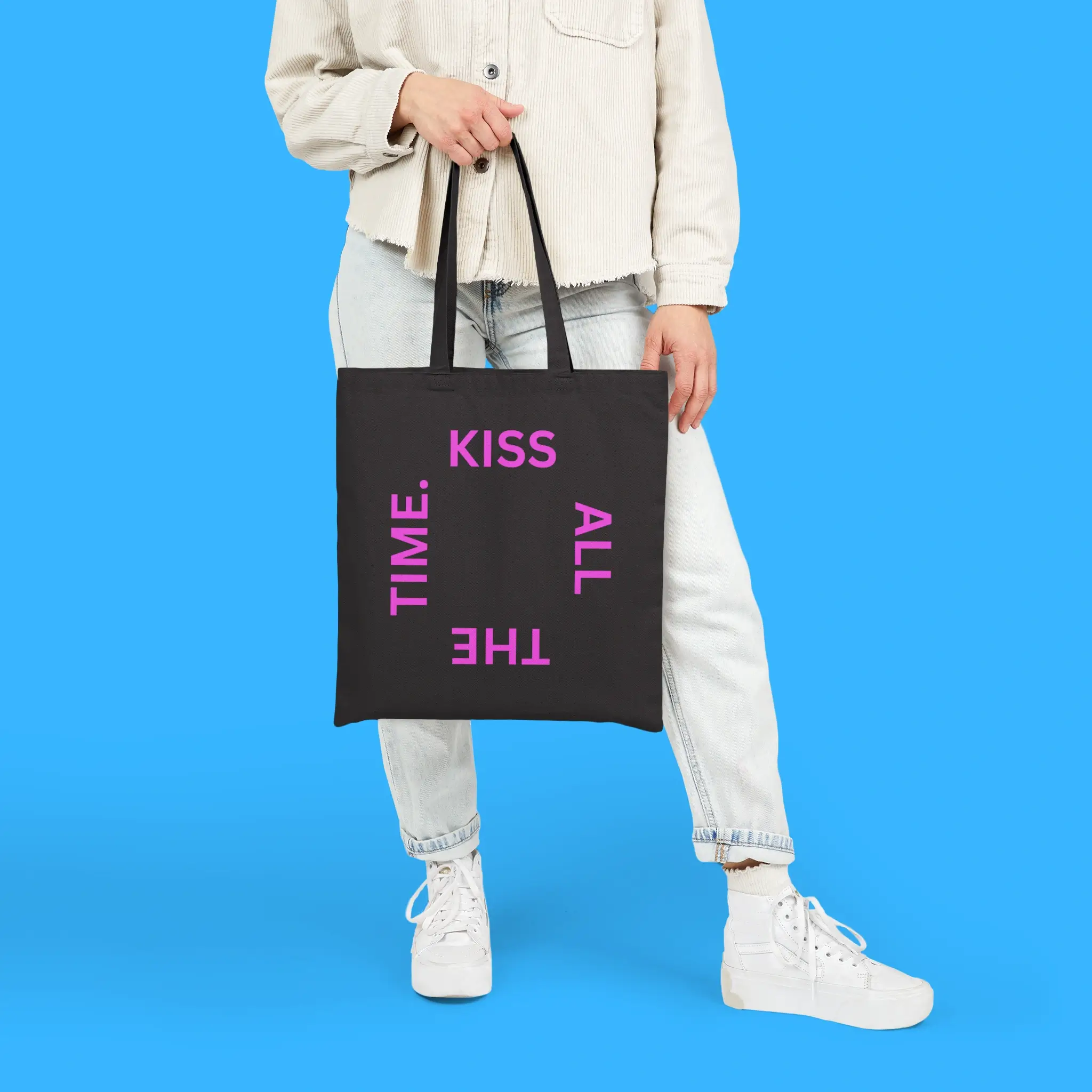 Carry your essentials with flair. The Kiss All The Time bag is practical, eco-friendly, and fashion-forward. Show off your Harry Styles fandom while keeping your items organized. Add it to your collection today and enjoy a bag that is as stylish as it is functional.