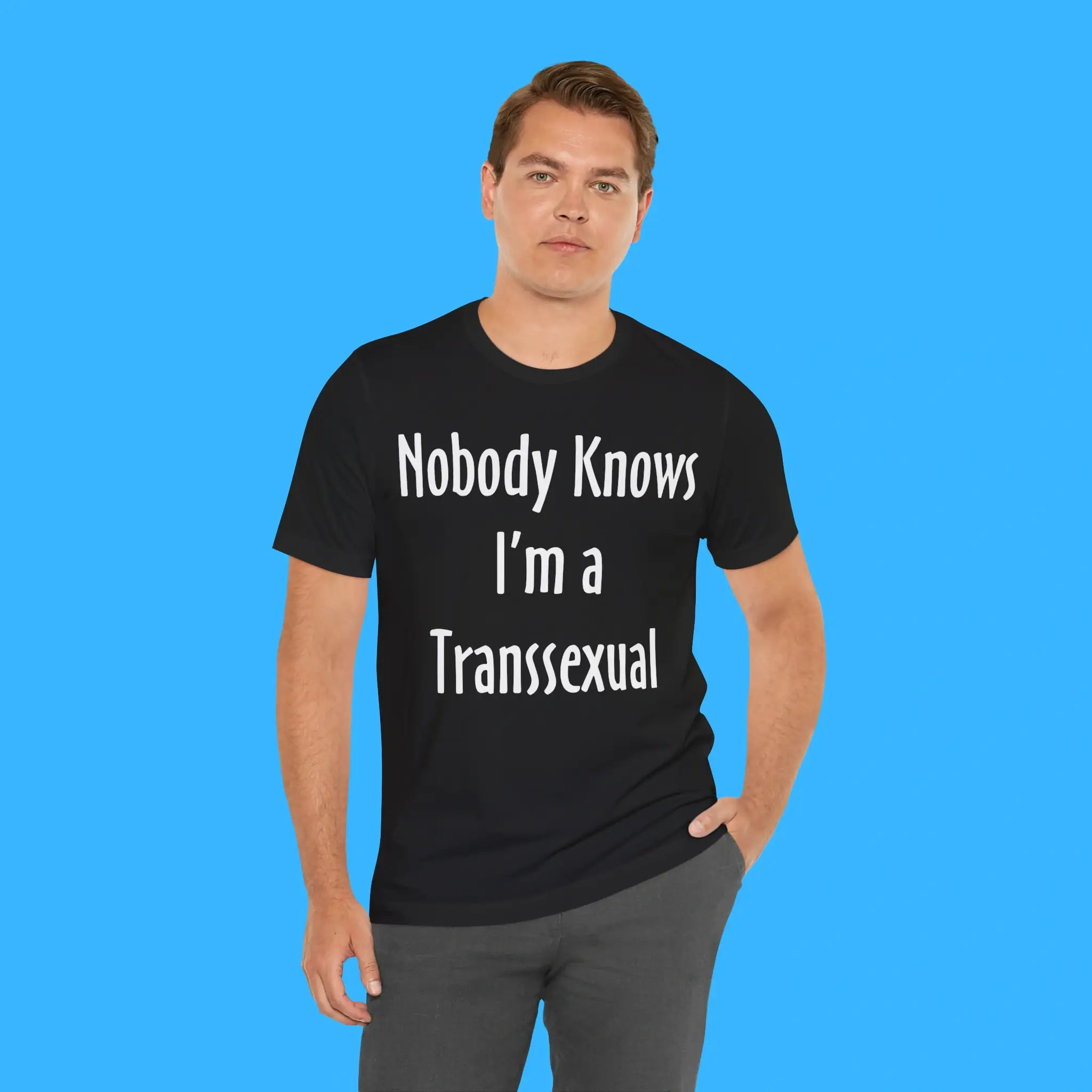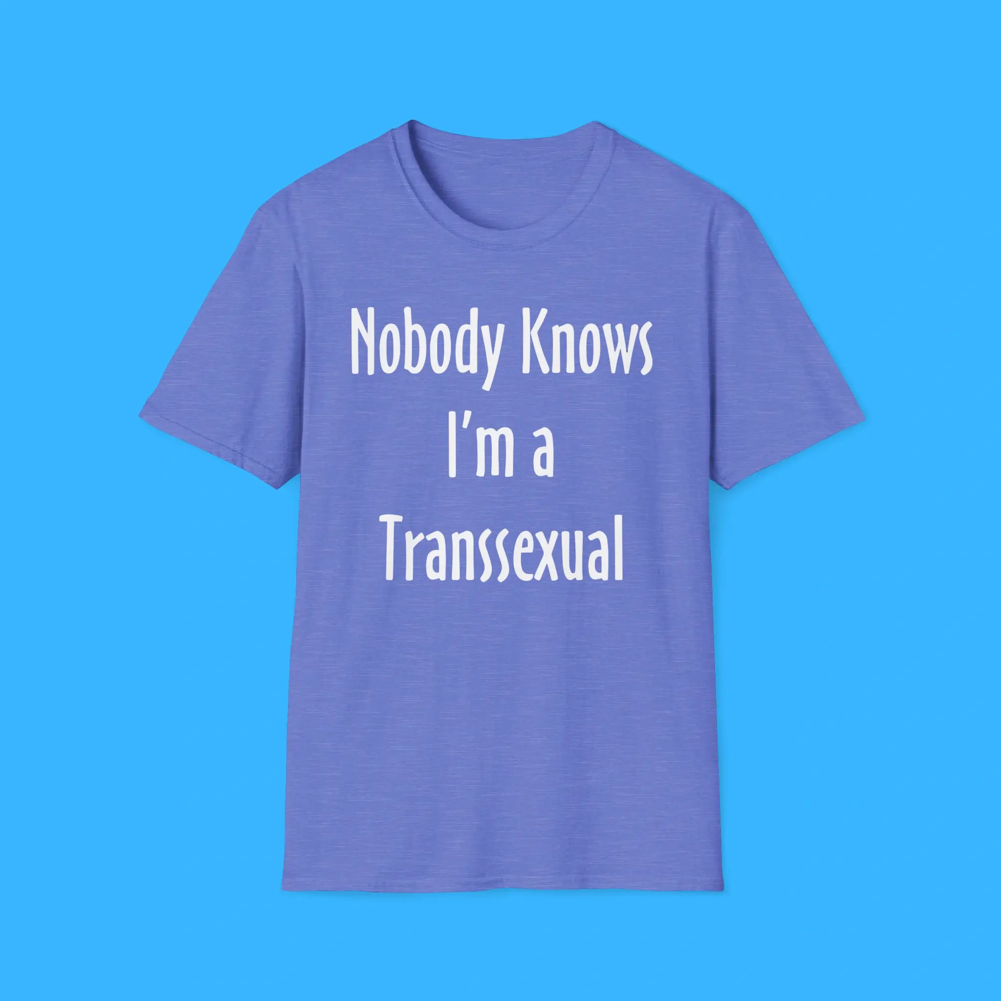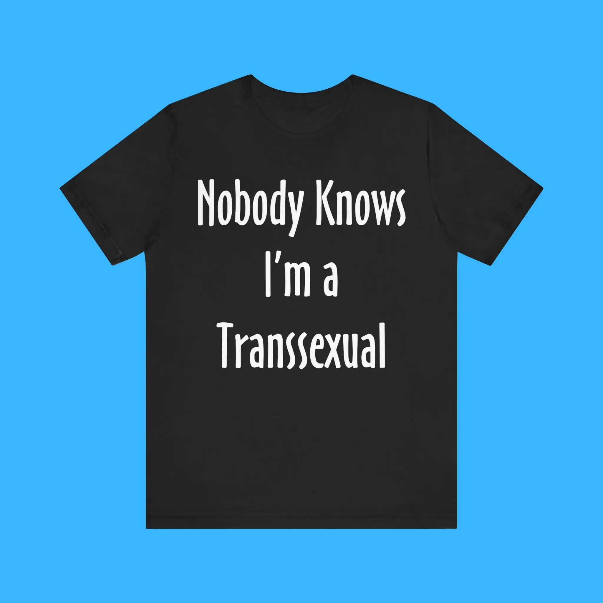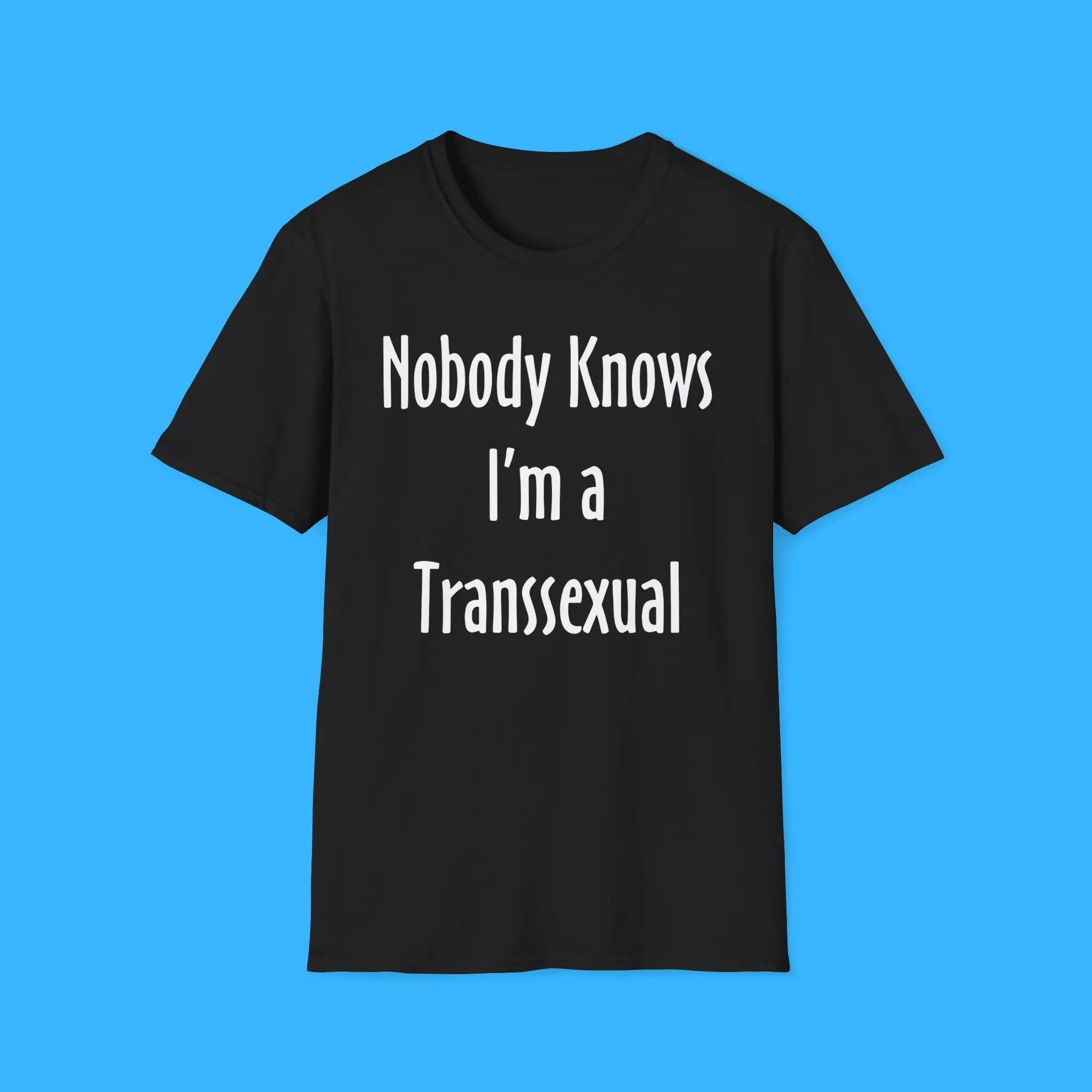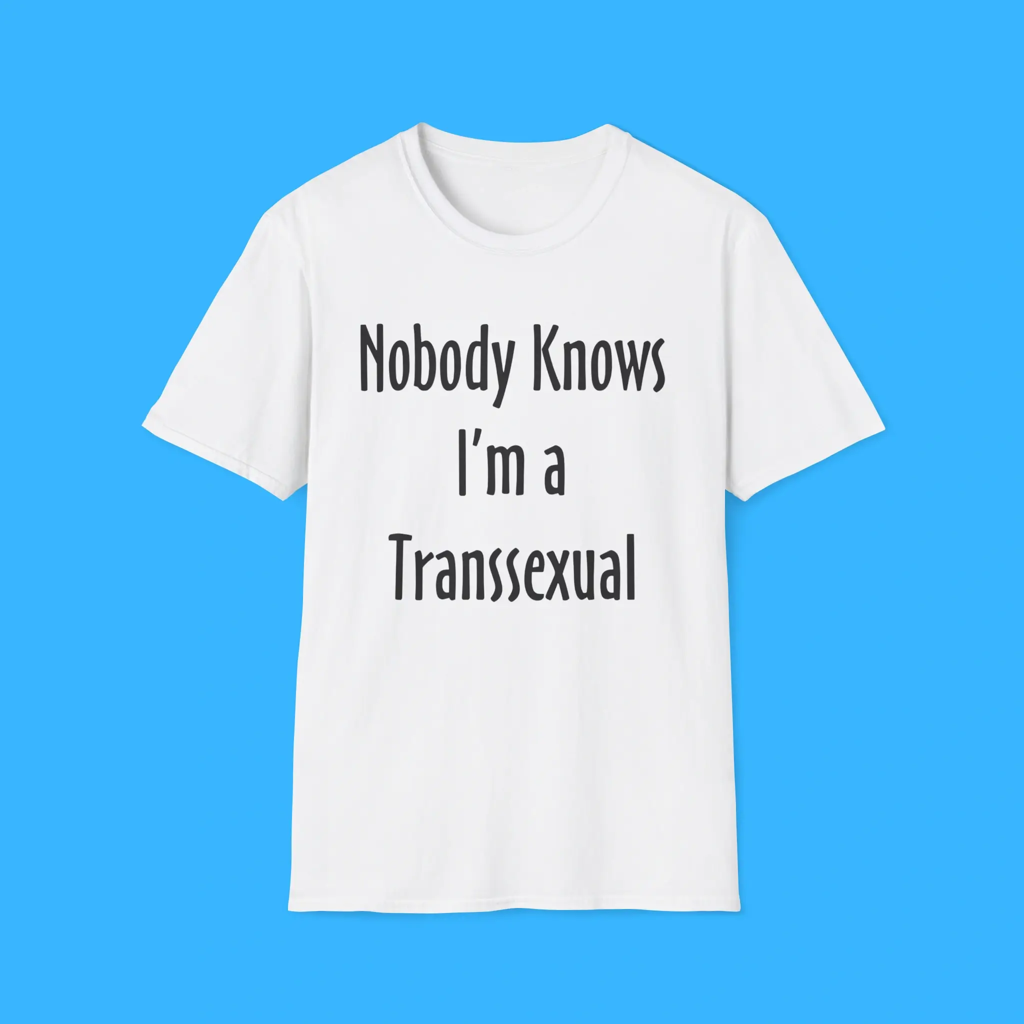 Featuring the iconic phrase “Nobody Knows I’m A Transsexual,” this shirt is more than just clothing—it’s a statement of identity, self-expression, and confidence. Made from premium-quality cotton and polyester, it offers a soft, breathable, and durable fit that’s perfect for daily wear. The unisex design ensures that anyone can rock this tee comfortably, making it a versatile addition to any wardrobe.