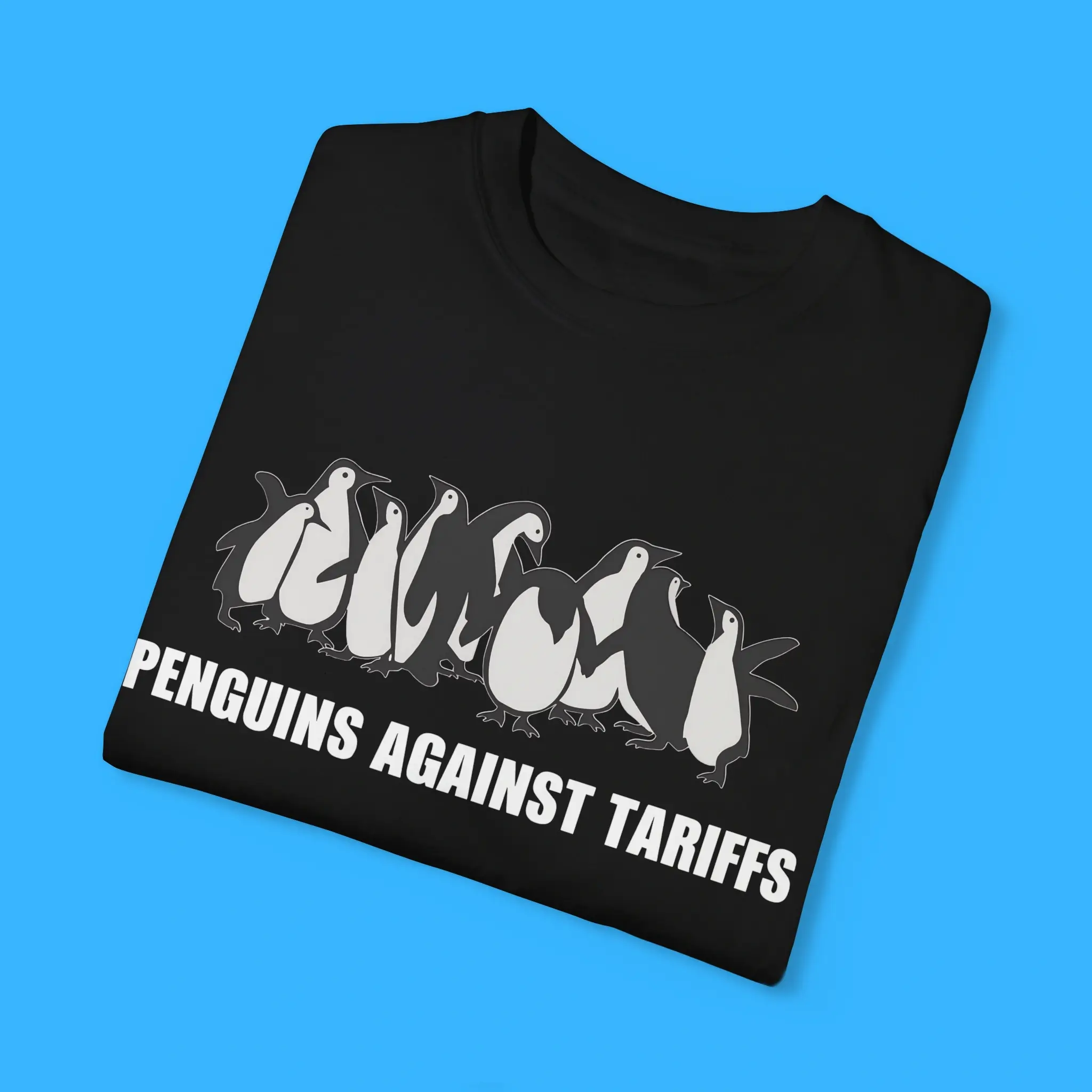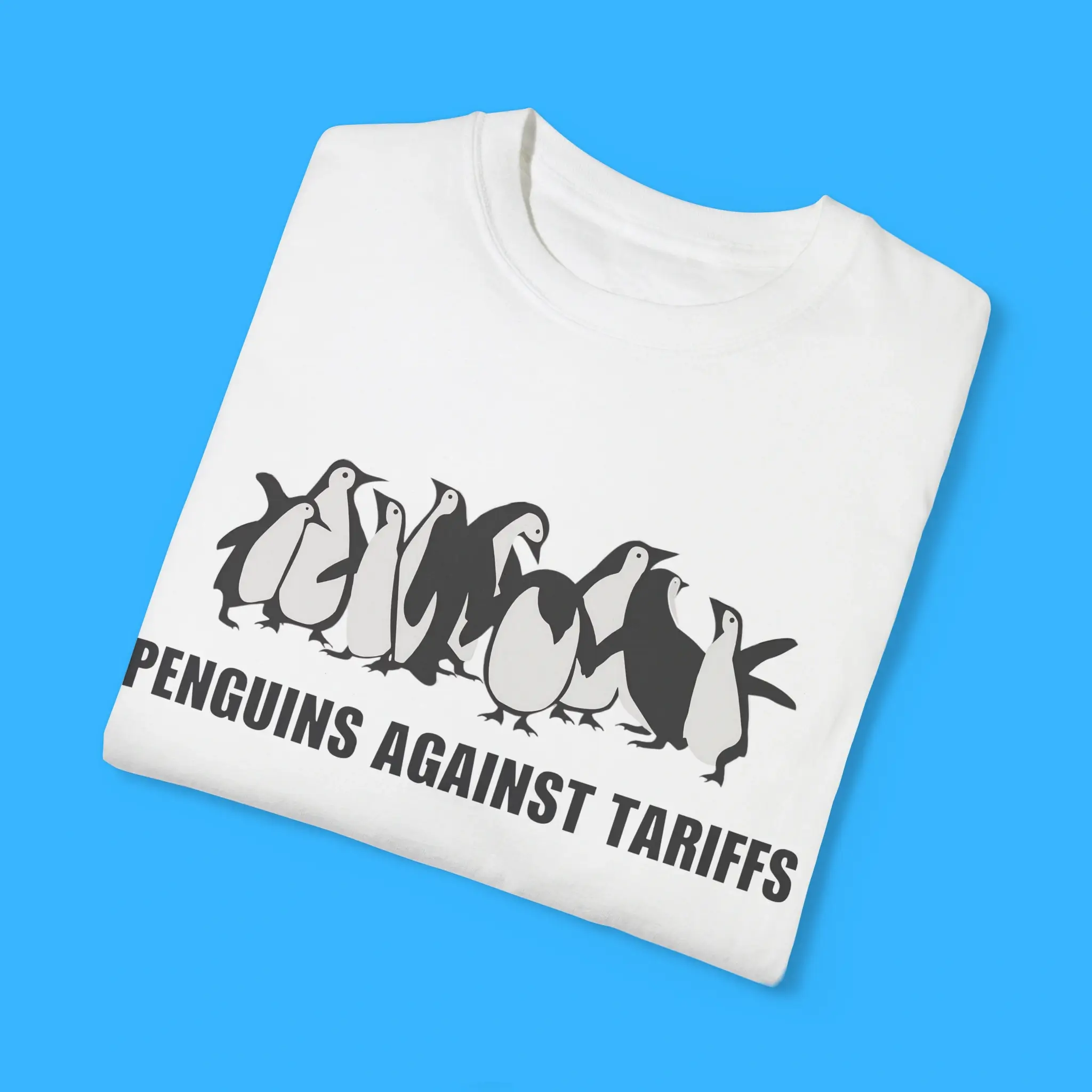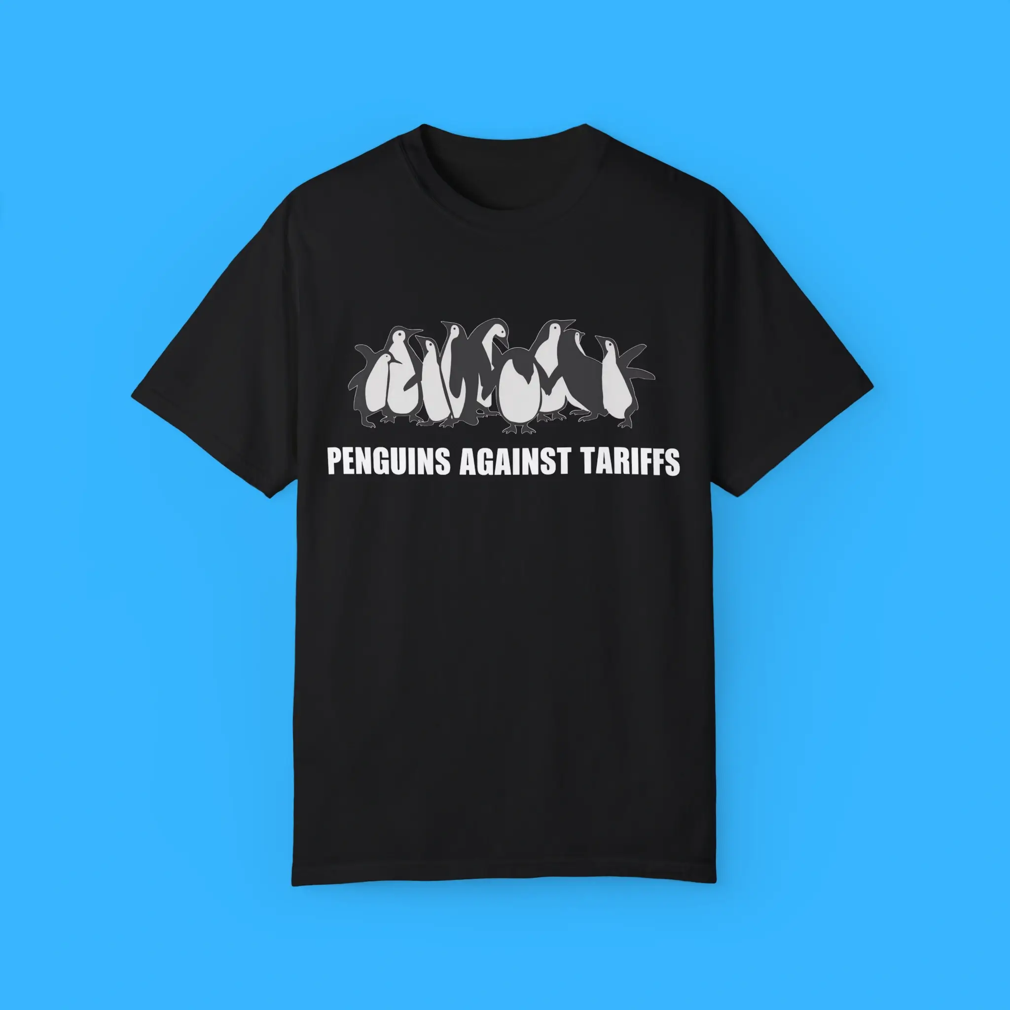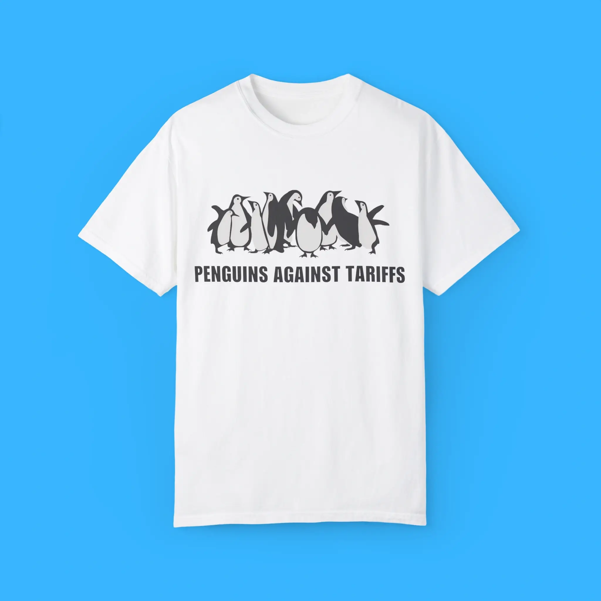 Penguins Against Tariffs Shirt – Funny Political T-Shirt with Penguin Graphic, Satirical Protest Apparel for Meme Lovers