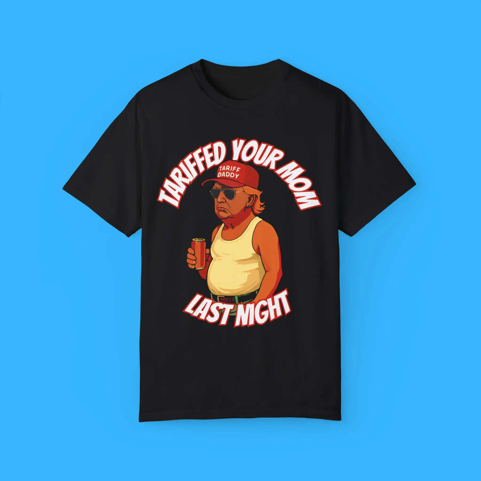 Don’t let the left have all the punchlines. Show them that Tariff Daddy still runs the meme economy. Order your Tariff Daddy Tariffed Your Mom Last Night Shirt today and put your patriotism where your punchlines are.