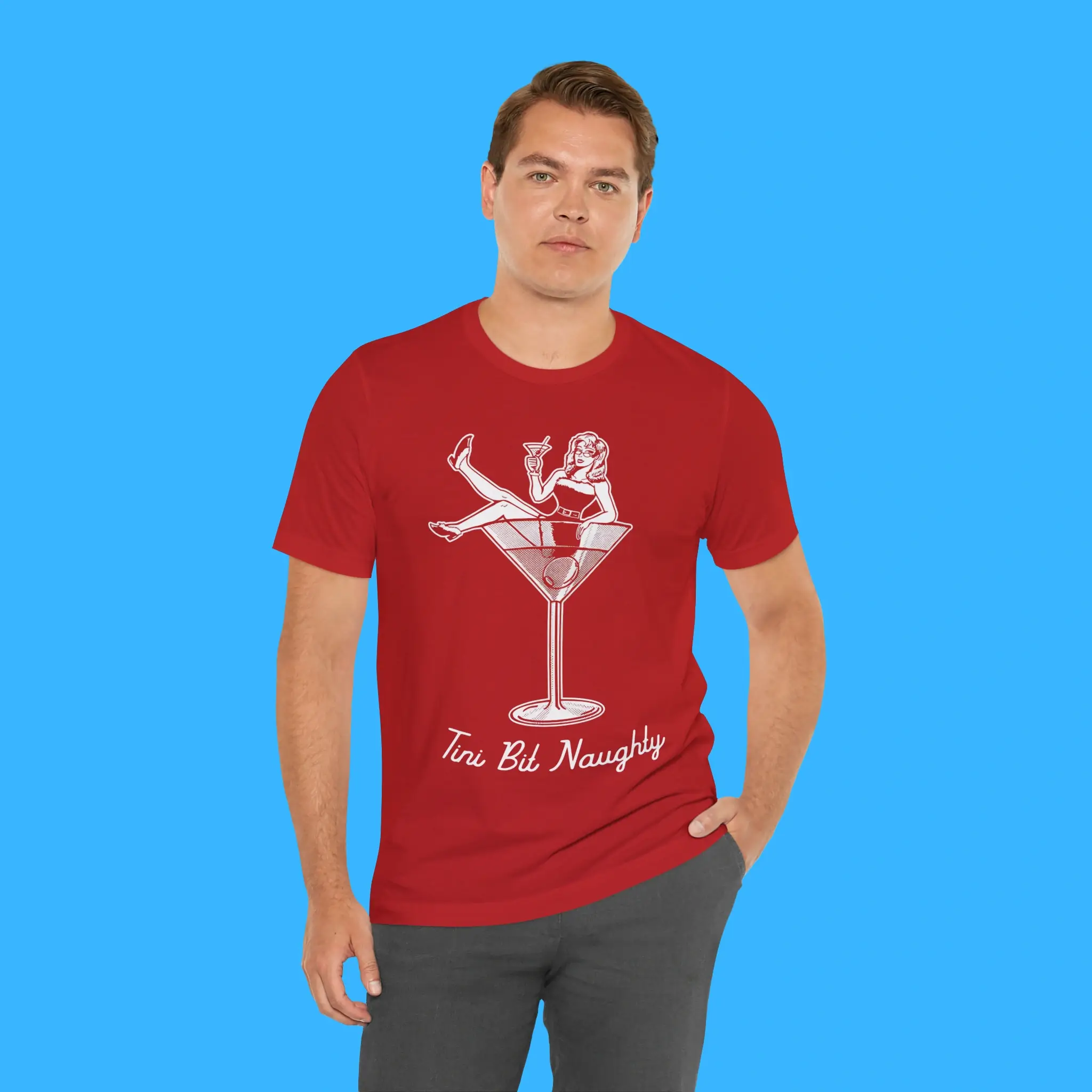 Don’t settle for boring holiday clothes. Instead, choose the Tini Bit Naughty Ugly Christmas Tee and show off your playful spirit. Order yours today and make this Christmas season merry, bright, and just a tini bit naughty!