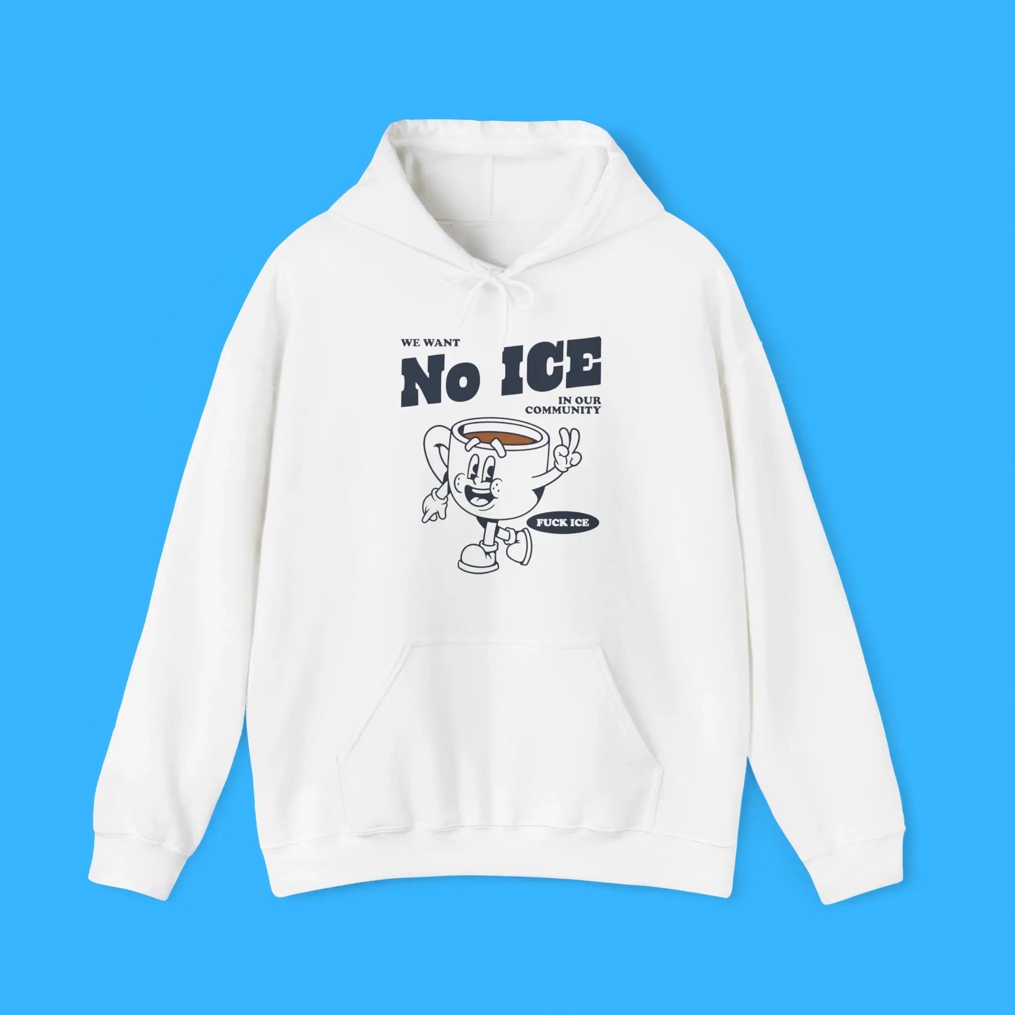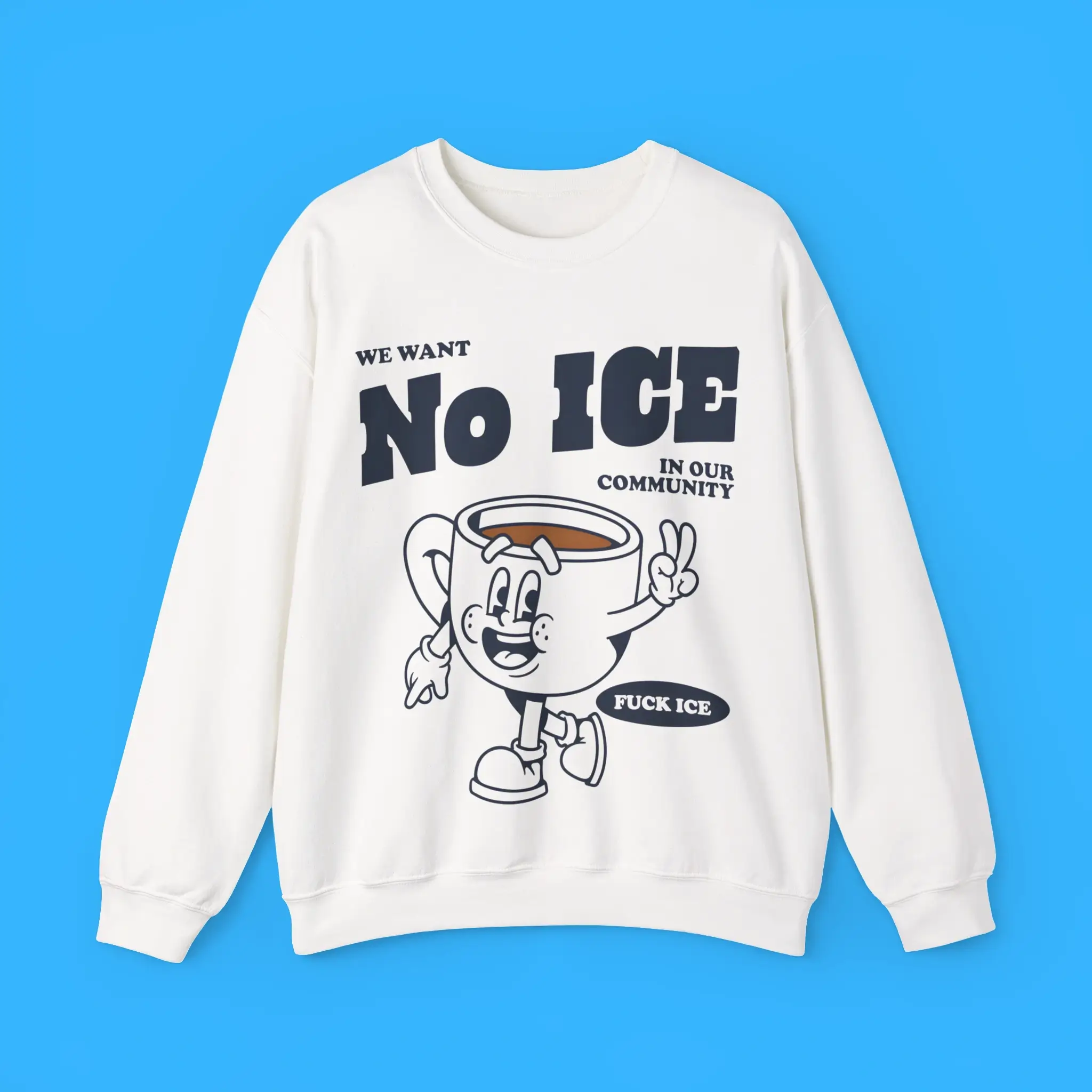 The bold design proudly reads “WE WANT NO ICE IN OUR COMMUNITY”. It is perfect for protests, rallies, or community events. Wear it to spark conversation and show solidarity with those fighting for immigrant justice.