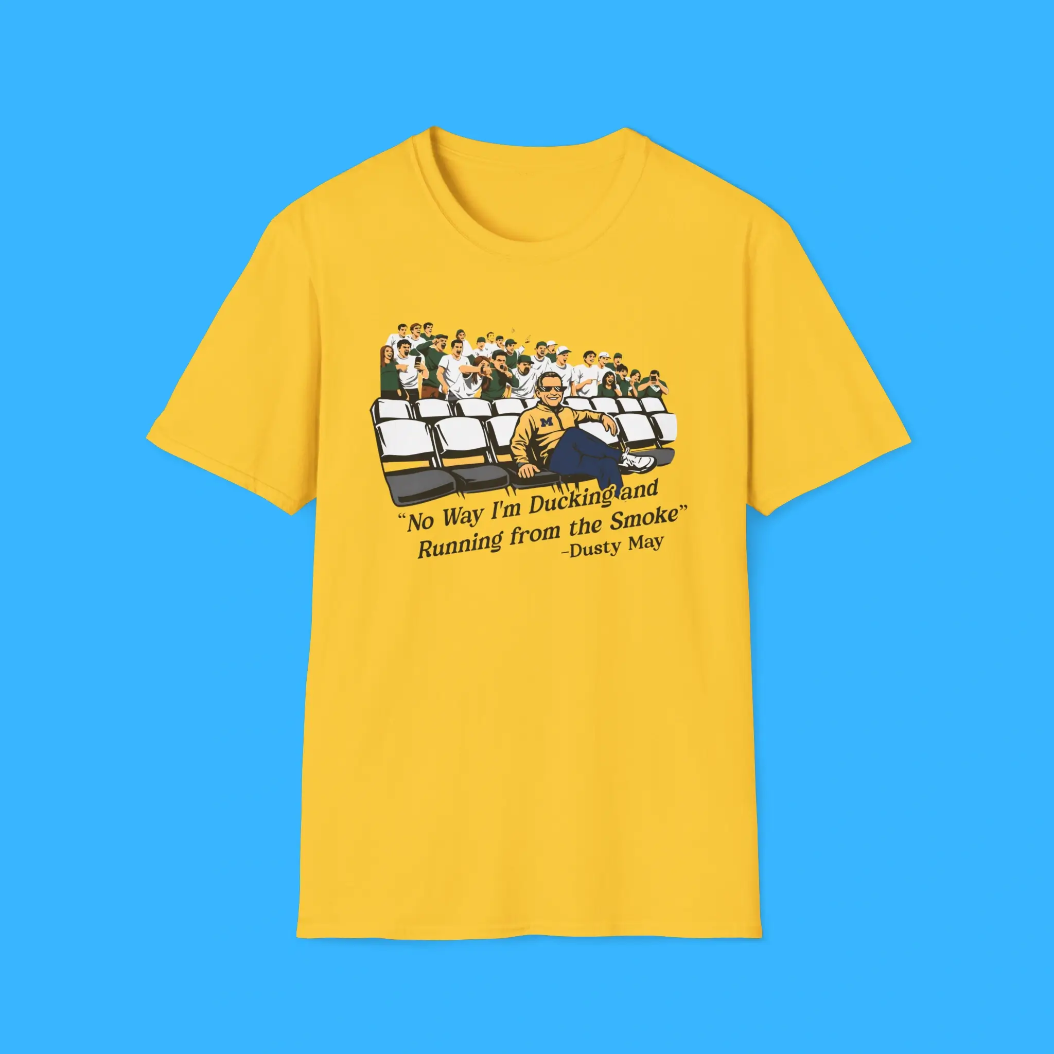 The Dusty May Ducking And Running From The Smoke Tee also fits perfectly into modern fan fashion. Today, many fans love wearing shirts that highlight iconic sports phrases. Because of this trend, this Dusty May fan tee stands out as a unique piece of basketball merch.